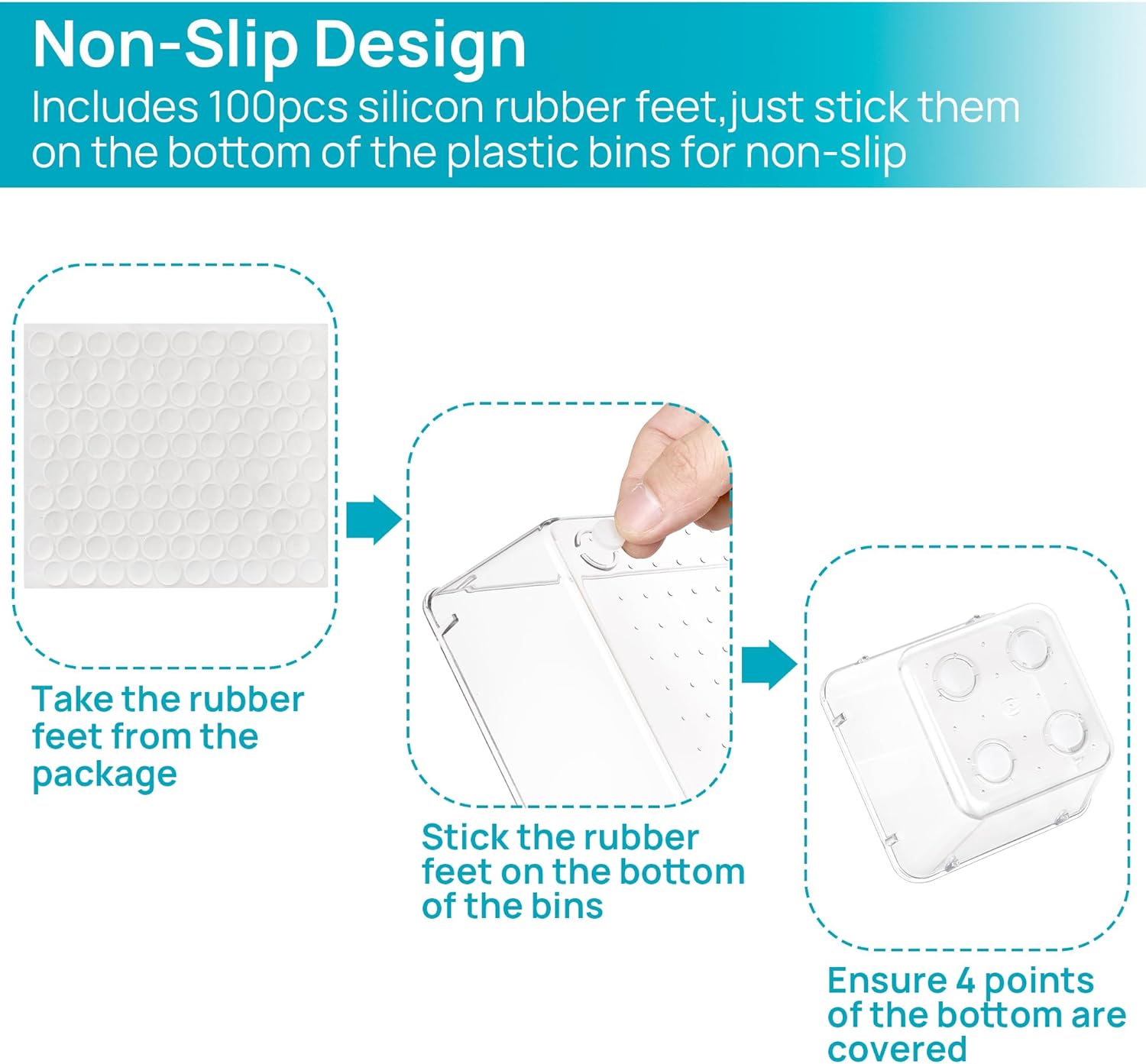 • ✔Non-Slip and Durable -- Extra 100pcs silicone pads are included, just stick them on the bottom of the plastic trays for non-slip. Made of durable and clear plastic, so you can see what’s in it without digging around or making a mess, help you get a neat lifestyle.
