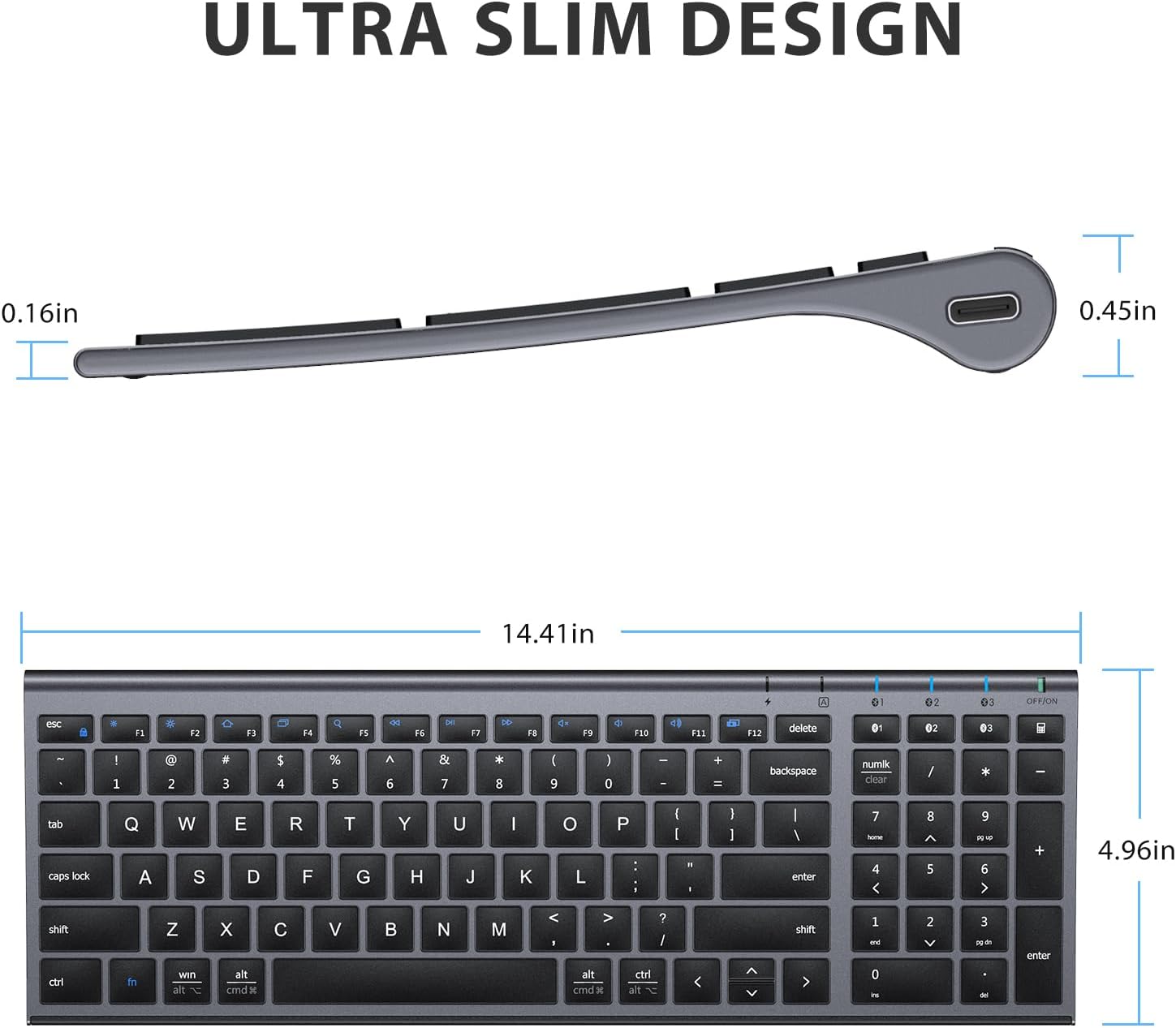 • Multi-Devices & Multi-OS: Seamlessly switch among 3 devices with BT 5.1 tech. Automatically recognizes different operating systems and layouts. Supports Windows PC/Laptop, iMac/Macbook, iPhone/iPad, Android smartphone/tablet.