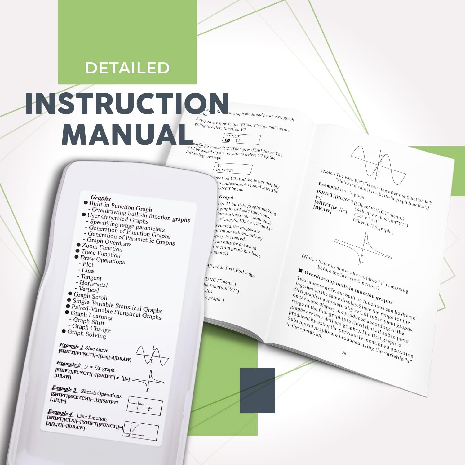 • Scientific calculator with graphic function: this is a scientific calculator that can display diagrams of formulas. It has a screen large enough to display charts and equations at the same time, so you can view calculations and corrections in detail. The size 7 x 3.3 ensures comfortable operation.