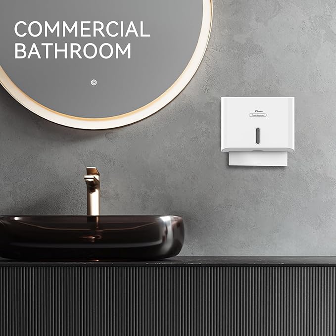 Paper Towel Dispenser Wall Mount, Adhesive No Drilling Multifold Trifold C Fold Commercial Hand Towel Dispenser,White