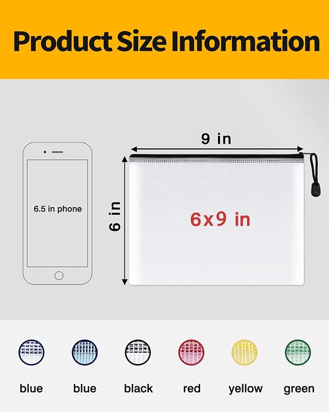 • PACKAGE CONTAINS: You will get a set of 18 Packs 6x9 inches black plastic zipper pouches for the most paper size of letter-size prints or smaller document storage. It can help you organize your miscellaneous items to meet your daily life and work. Manufacturer recommended age 3 years and up