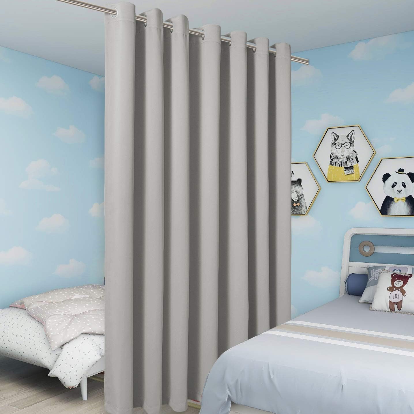 BONZER Room Divider Curtain Total Privacy Wall Wide Grommet Room Darkening Curtains for Patio Sliding Glass Door, 96L x 108W Inch (8L x 9W ft), 1 Panel, Silver