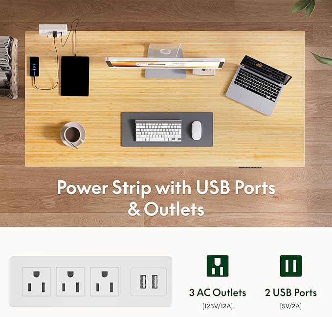 • REMOVABLE DESKTOP POWER OUTLET: To ensure you can conveniently charge your electronic devices, the desktop is equipped with 3 power outlets and 2 USB charging ports. It can be clipped to the back or side of your desk to meet your needs for different locations. Tidy up your workspace with a cable management device.