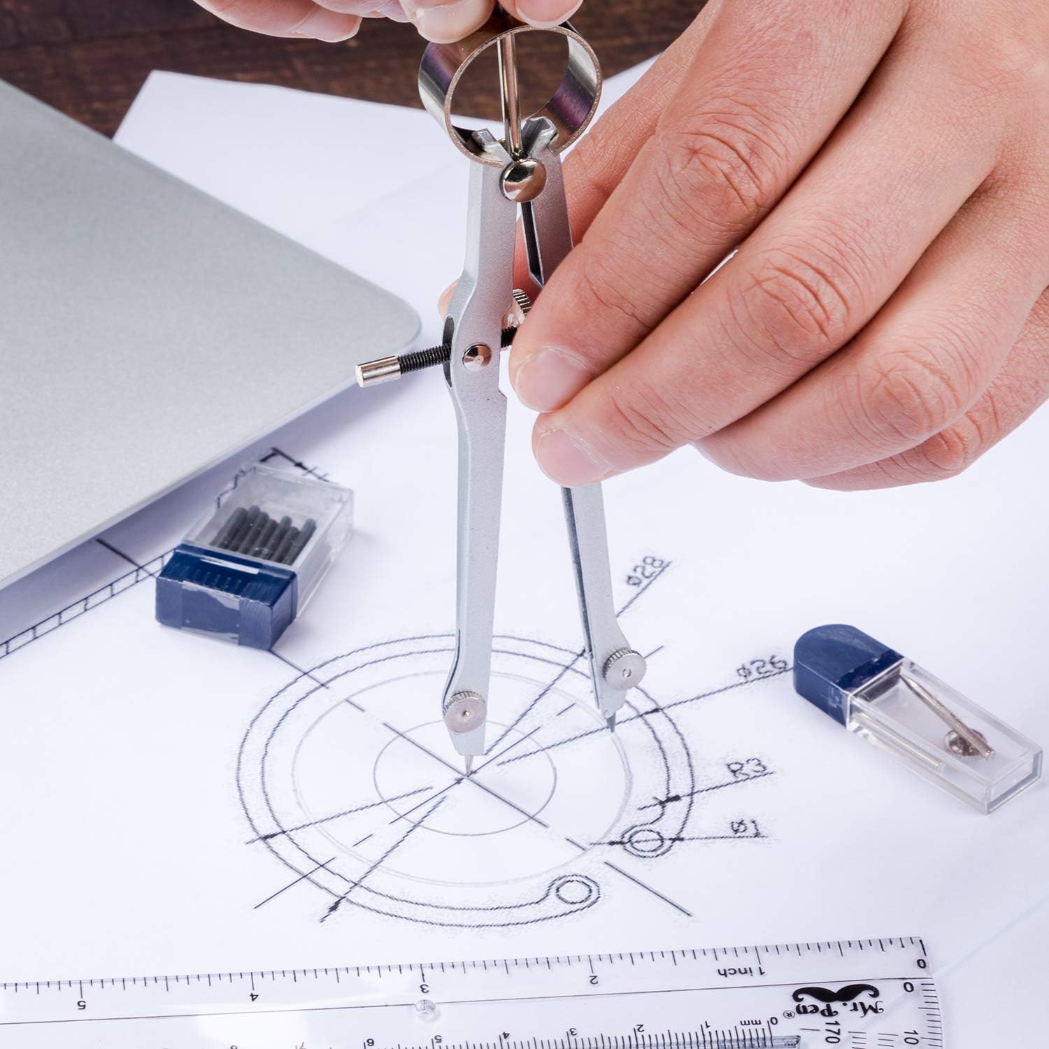• Precision geometry compass with spring bow head and center wheel prevents unintentional leg movements. Easy to adjust legs, great for precise drawings