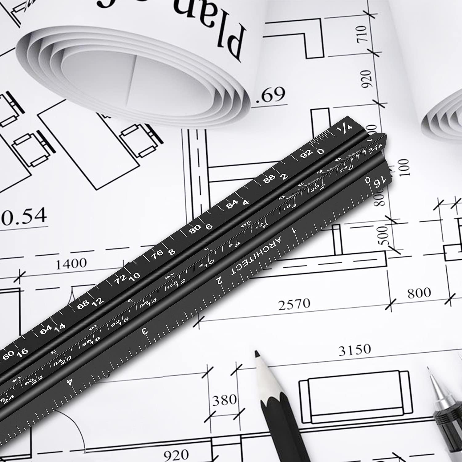 12" Architectural Scale Ruler Aluminum Architect Scale Triangular Scale Ruler for Architects, Draftsman, Students and Engineers, Black