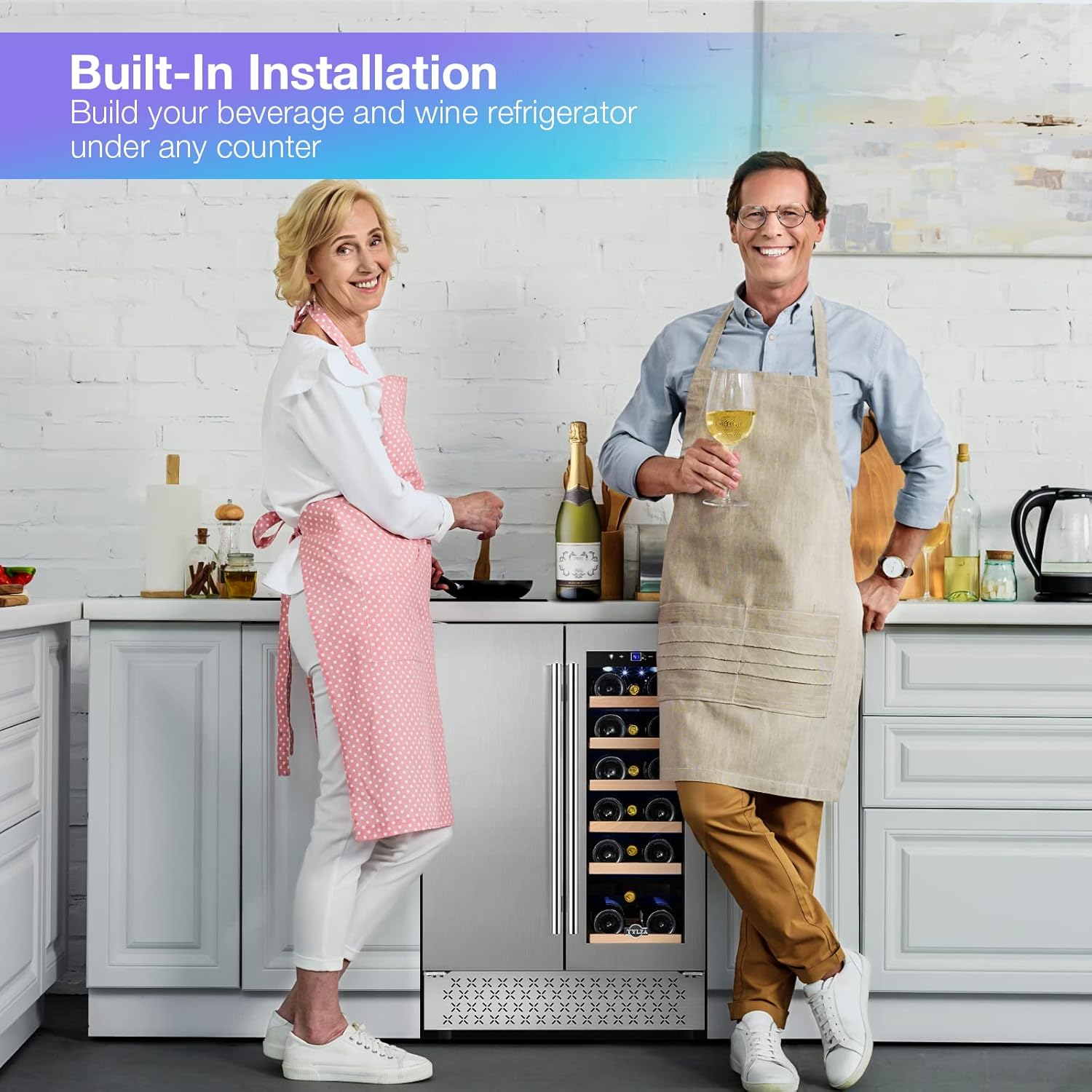 Tylza Wine and Beverage Refrigerator, 24 inch Dual Zone Wine Beverage Cooler Built-in and Freestanding, with Seamless Stainless Steel Door Quick Cooling Under Counter Beer Wine refrigerator