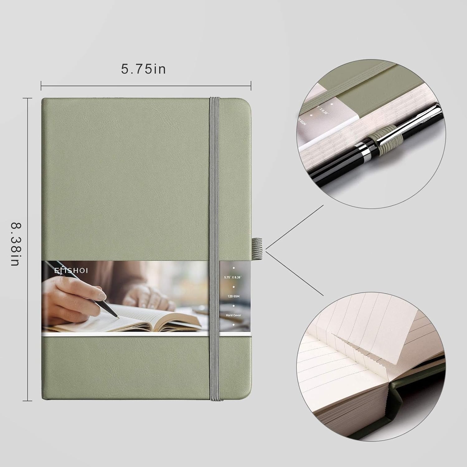 EMSHOI Lined Journal Notebook - 120gsm Thick Leather Journal with Sticky Notes, 256 Numbered Pages A5 Hardcover College Ruled Notebook for Women Men Work School Writing, Medium 5.75" x 8.38"-Green