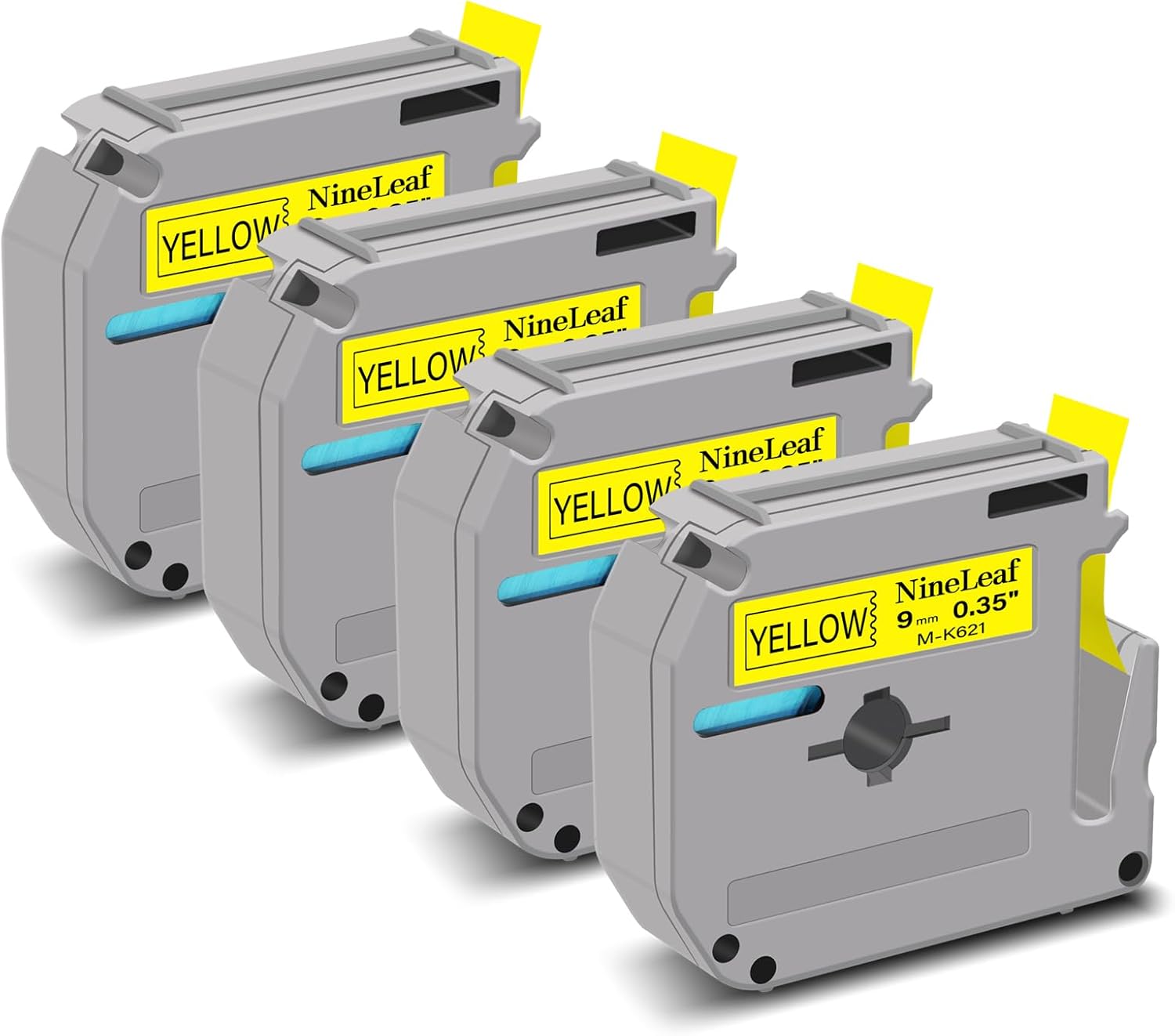 NineLeaf 4 Pack Compatible for Brother P-Touch M Label Tape MK621 M-K621 M621 Black on Yellow 3/8" (9mm) x 26.2ft (8m) Labeling Refill Cartridge Work in PT-45M PT-65 PT-70 PT-80 PT-M95 Label Maker