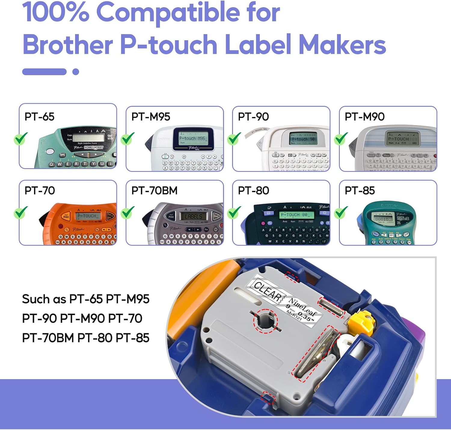 • Compatible for brother p-touch label makers: PT100, PT110, PT55BM, PT55S, PT65, PT65SB, PT65SCCP, PT65SL, PT65VP, PT70, PT70BBVP, PT70BM, PT70BMH, PT70HK, PT70HOL, PT70HOT, PT70SP, PT70SR, PT80, PT80SCCP, PT85, PT90