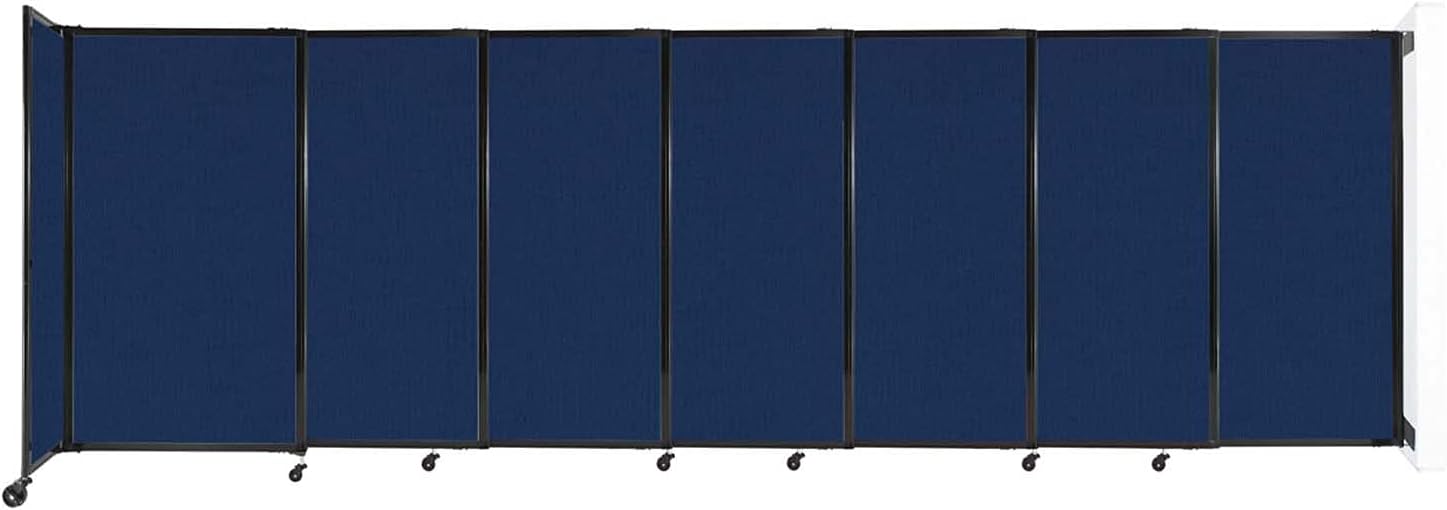 Wall-Mounted Sliding StraightWall Room Divider | Adjustable Widths | Locking Wheels | Room Separator | Up to 15'6" Wide x 5' Tall Navy Blue Fabric Panels