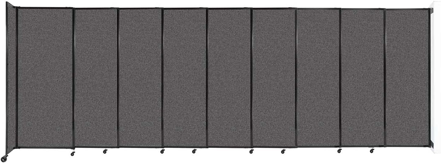Wall-Mounted Sliding StraightWall Room Divider | Adjustable Widths | Locking Wheels | Room Separator | Up to 19'9" Wide x 6'10" Tall Charcoal Gray Fabric Panels