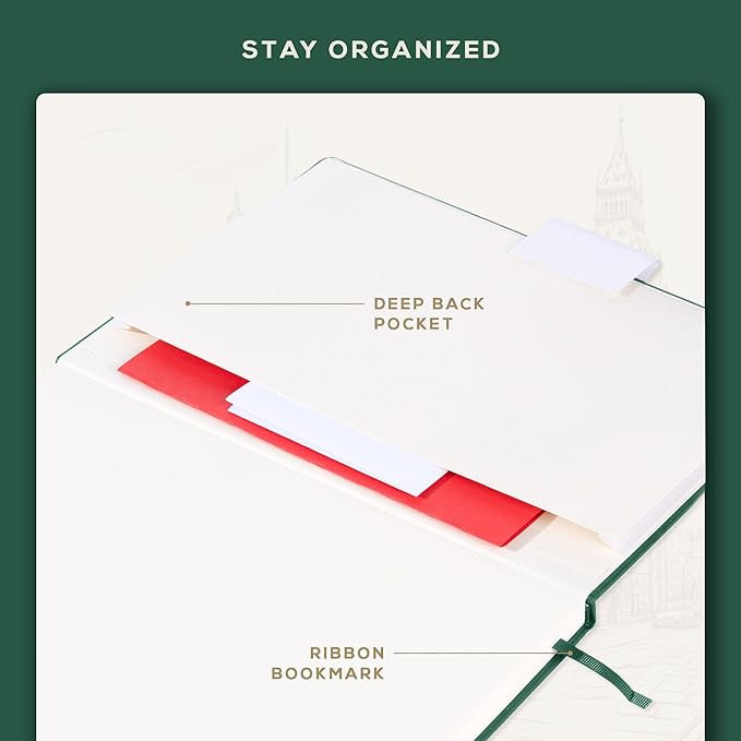 • Enjoy Bleed-Free Writing - This hardcover professional notebook uses thick pages that resist ink bleed for fountain pen users. Every word remains pristine and legible, no matter your pen choice!