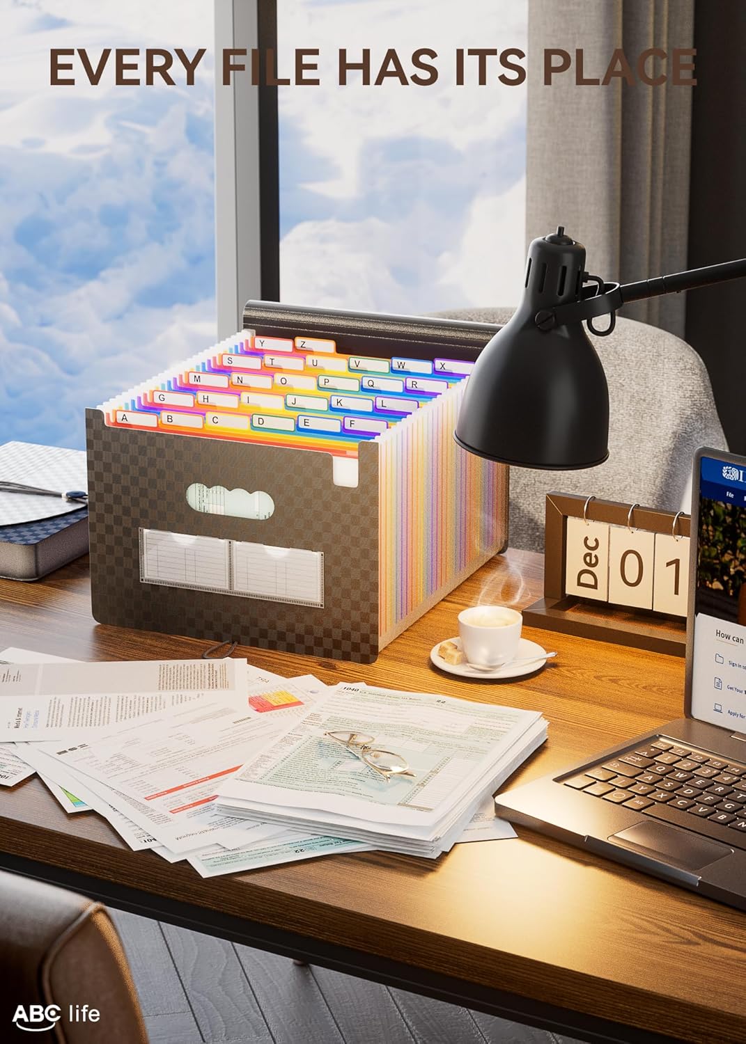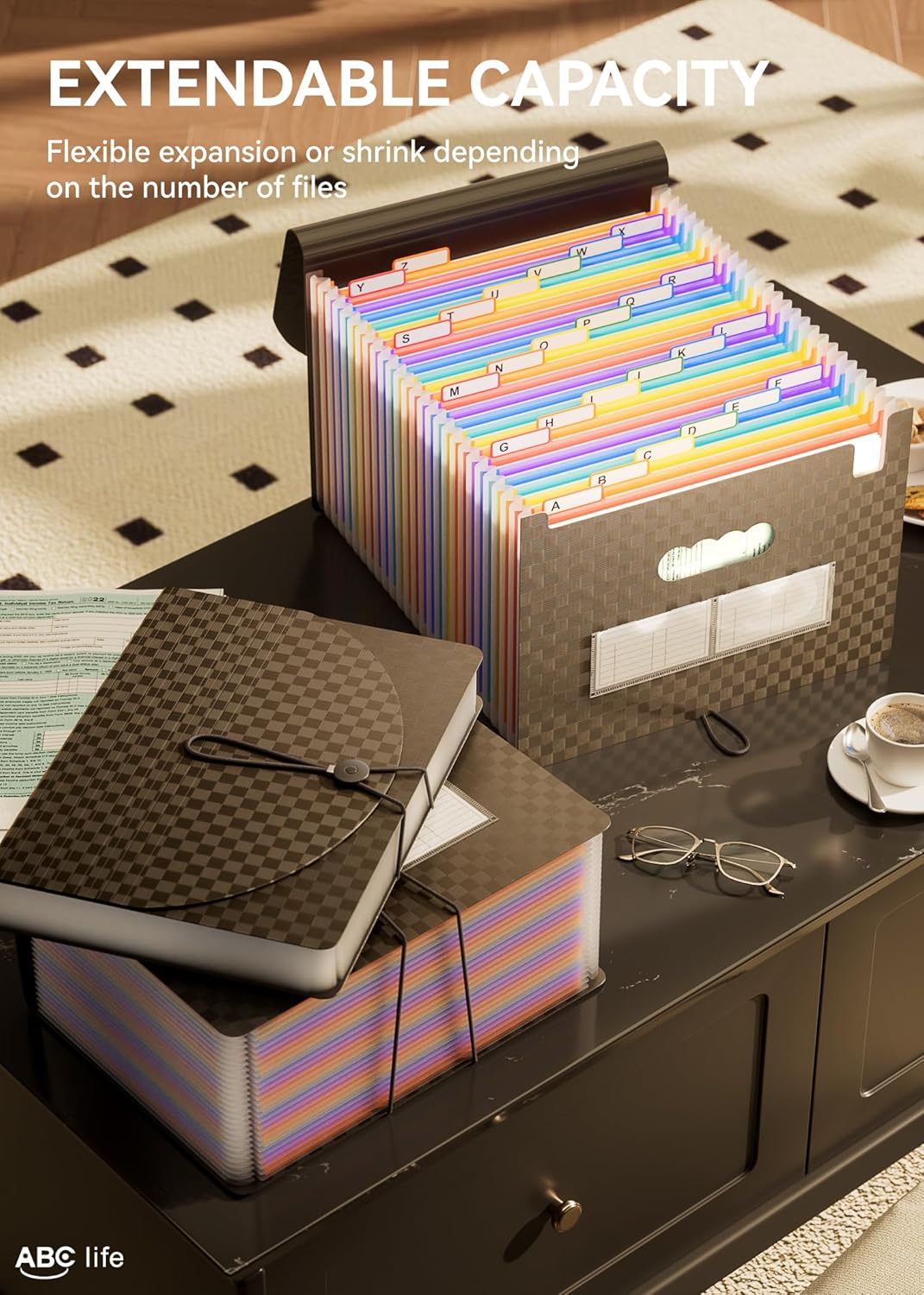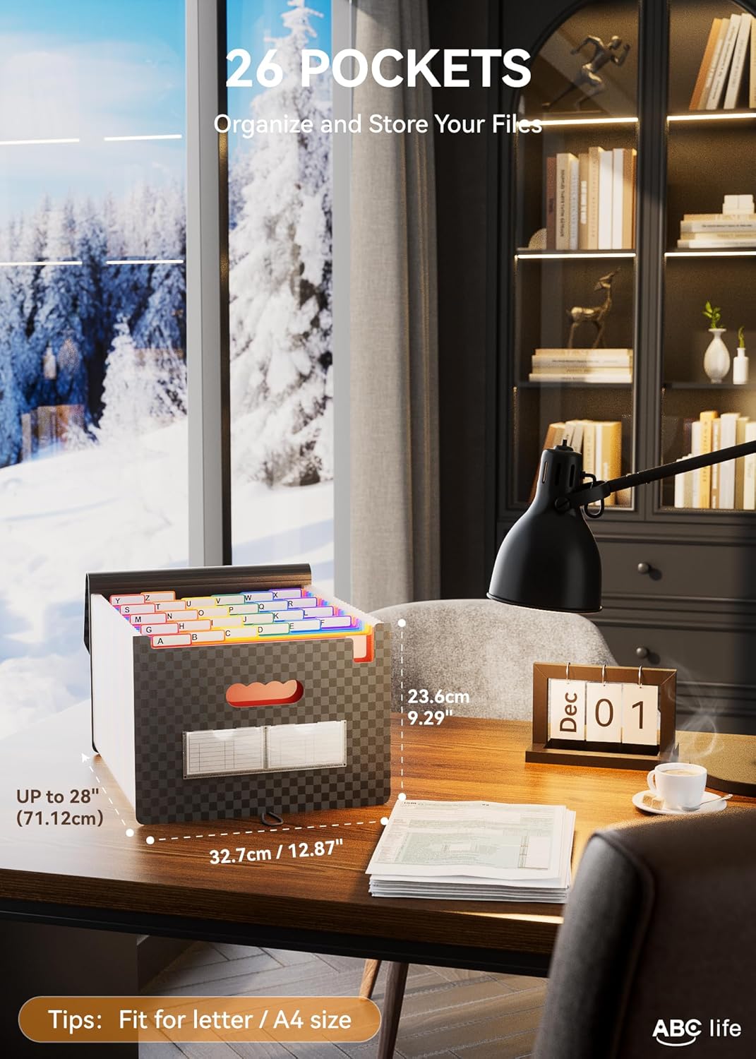 • ✅【26 POCKETS MONTHLY FILE ORGANIZER】ABC life 26 pockets Accordian File Organizer suitable for filing tax and storing important family documents. Product size is 13 "x 9.4"x 28", which can be used to store plenty of Letter/A4 size files.