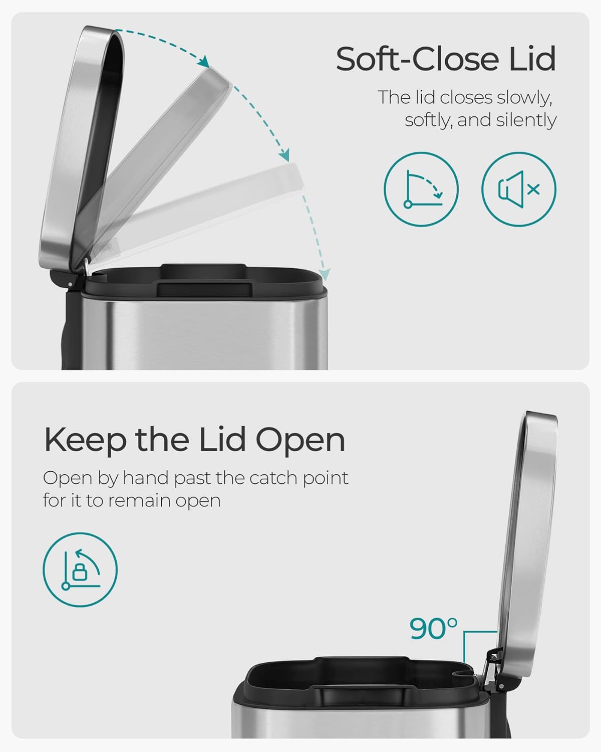 • [Soft-Close, Odor-Sealing Lid] This kitchen trash can features a slow and quiet soft close lid. The tight seal of the lid prevents lingering odors
