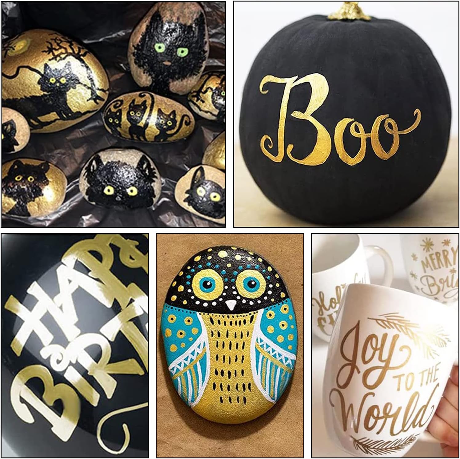 • WORKS ON ALMOST ANY SURFACES: The gold paint pens works on almost any surfaces such as rock, canvas, wood, metal, glass, ceramic, plastic, tire, etc. They are the best tool for creativities