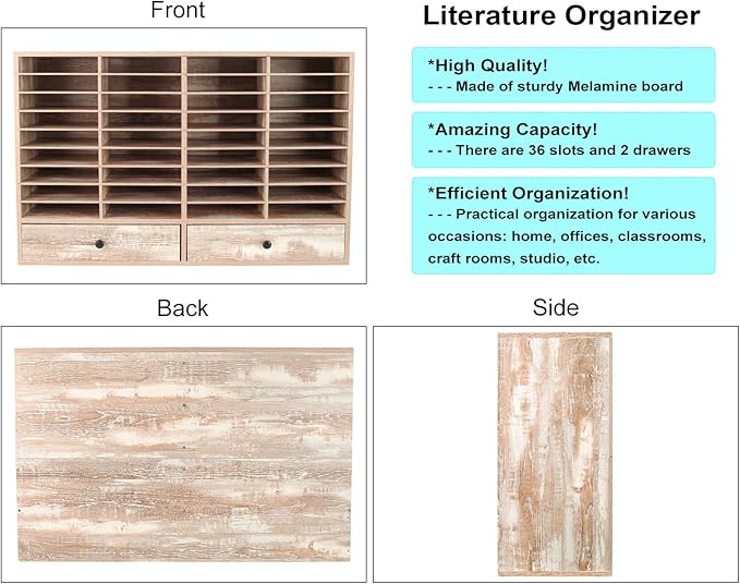 • ▶High Quality. The literature organizer is made of excellent quality Melamine Faced Board, wear-resistant and waterproof, durable and resistant to cracking, suitable for many years and withstand lots of use