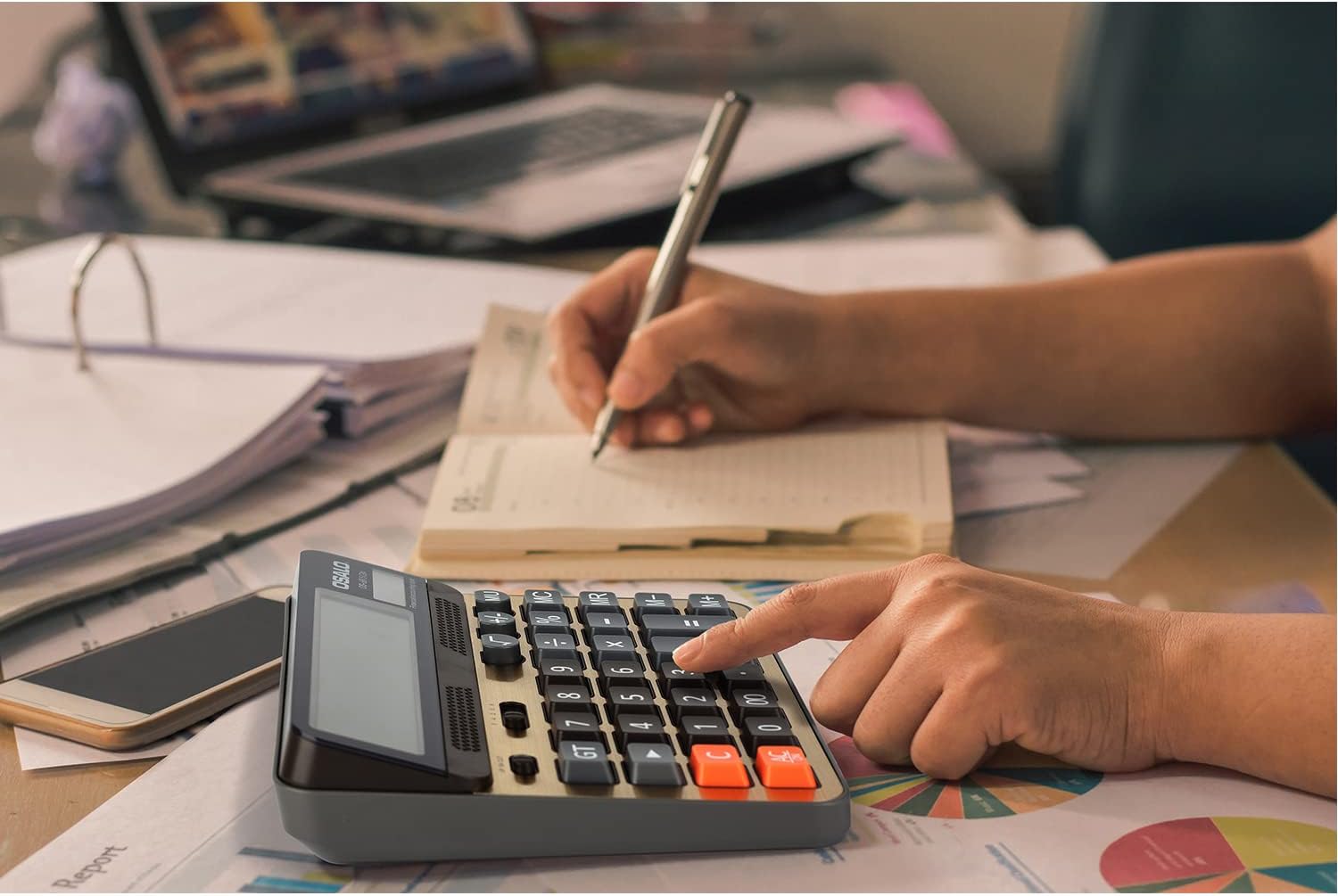 • 【Ergonomic Angle Display&Large Button】When you put the calculator on the desktop, the 30°large display is just opposite your sight, more clear than a straight display. Large and separated keys, make your every press more accurate.