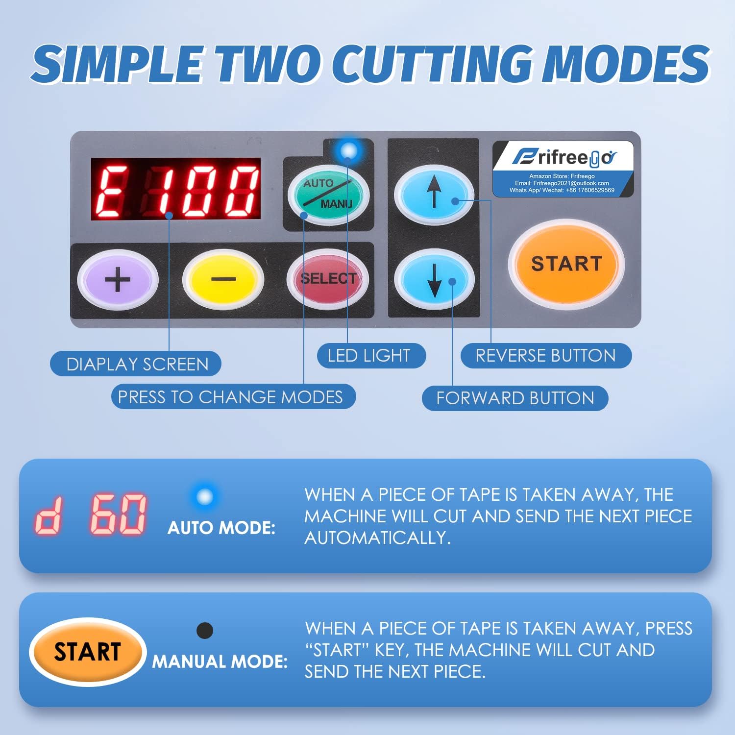 • Automatic Cutting Design To Save You Much Time--- Our tape dispenser can preset the cutting length max to 999mm, and can hold two rolls of tape for synchronized cutting. There are two modes of automatic tape piece output for option, to meet different using situation.