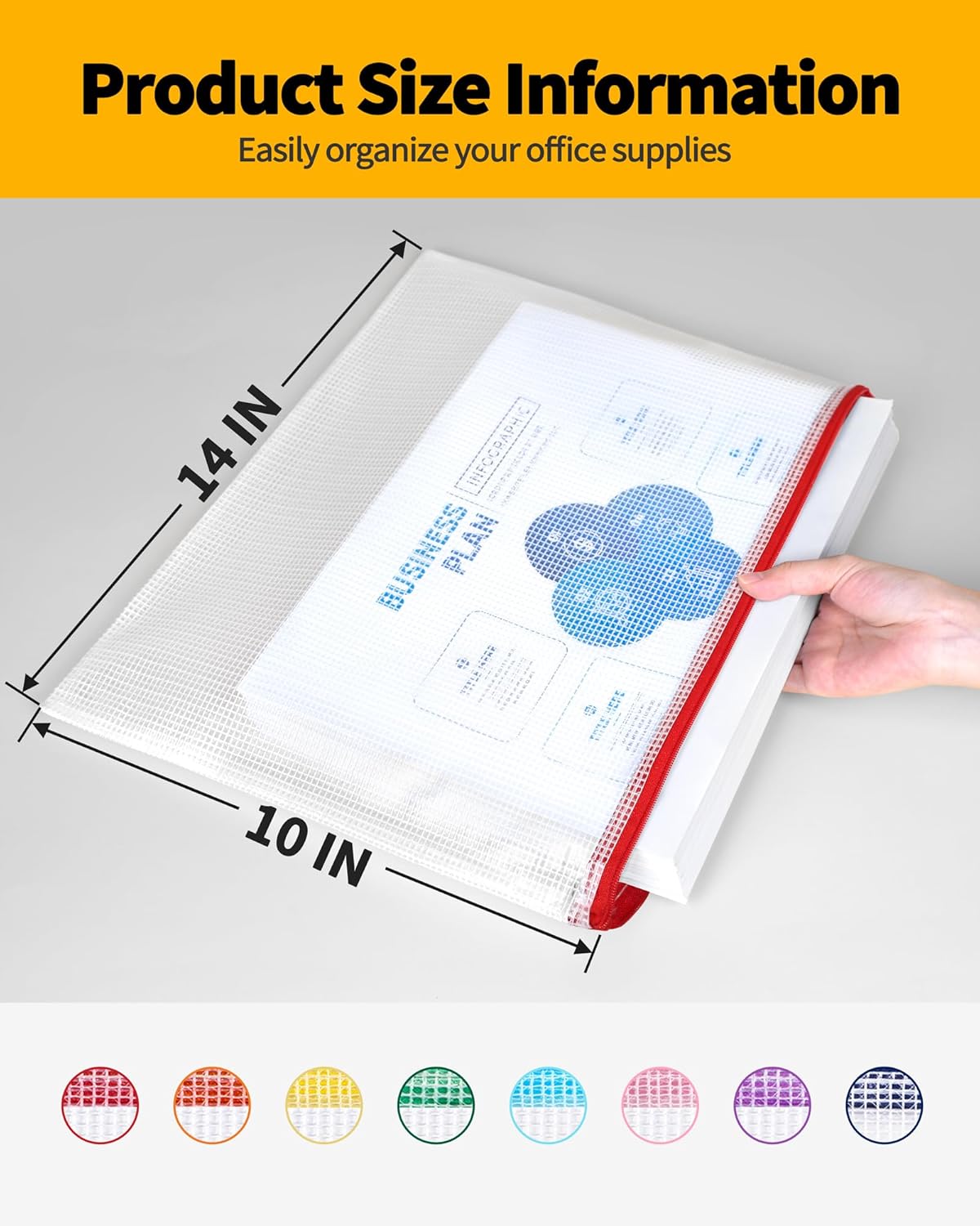 • PACKAGE CONTAINS: You will get a set of 24 Packs 10x14 inches multi-colored plastic zipper pouches for the most paper size of letter-size prints or smaller document storage. It can help you organize your miscellaneous items to meet your daily life and work. Manufacturer recommended age 3 years and up.
