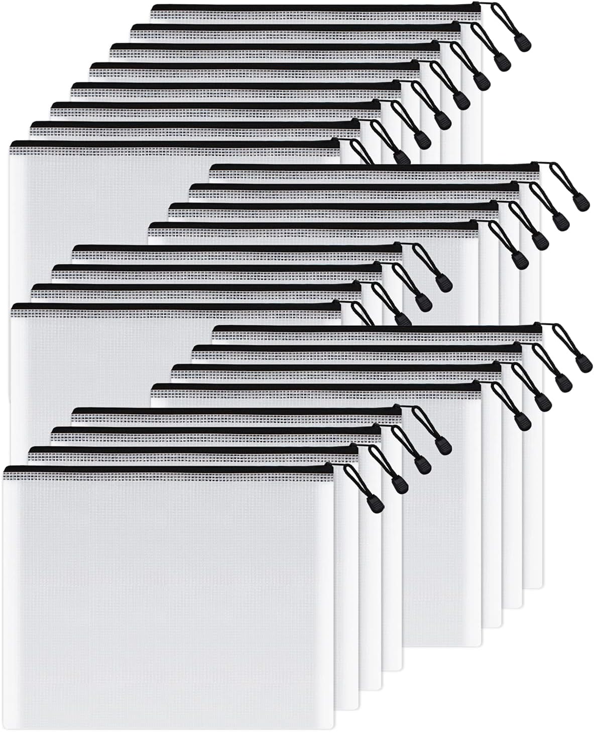 SUNEE Mesh Zipper Pouch 9x13 in (Black, 24 Packs),Extra Large Water-Resistant Zip Bag for School Office Supplies, Puzzles & Games Organizing Storage