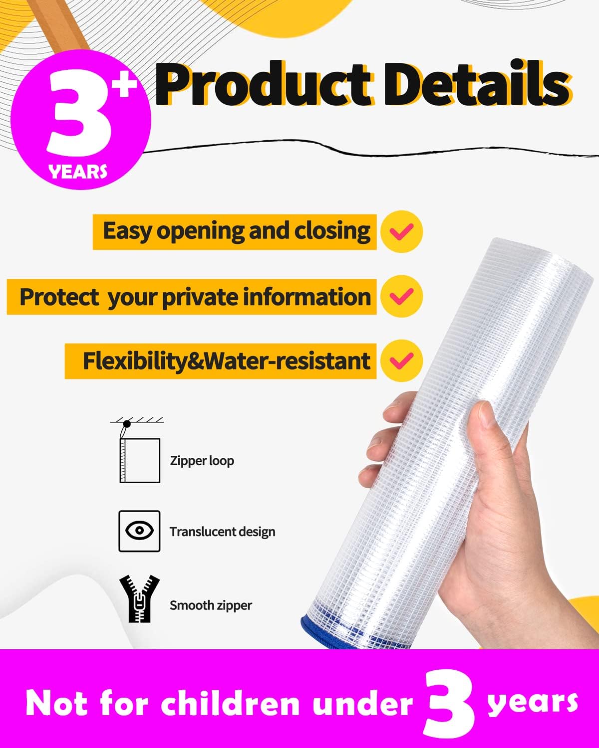 • DURABLE & PORTABLE: SUNEE zipper file bags are made of thick vinyl material, water-resistant, moisture-resistant. Each metal zipper is equipped with a rope loop, which is strong and durable. It can be used as a hanging ring and ready to hang