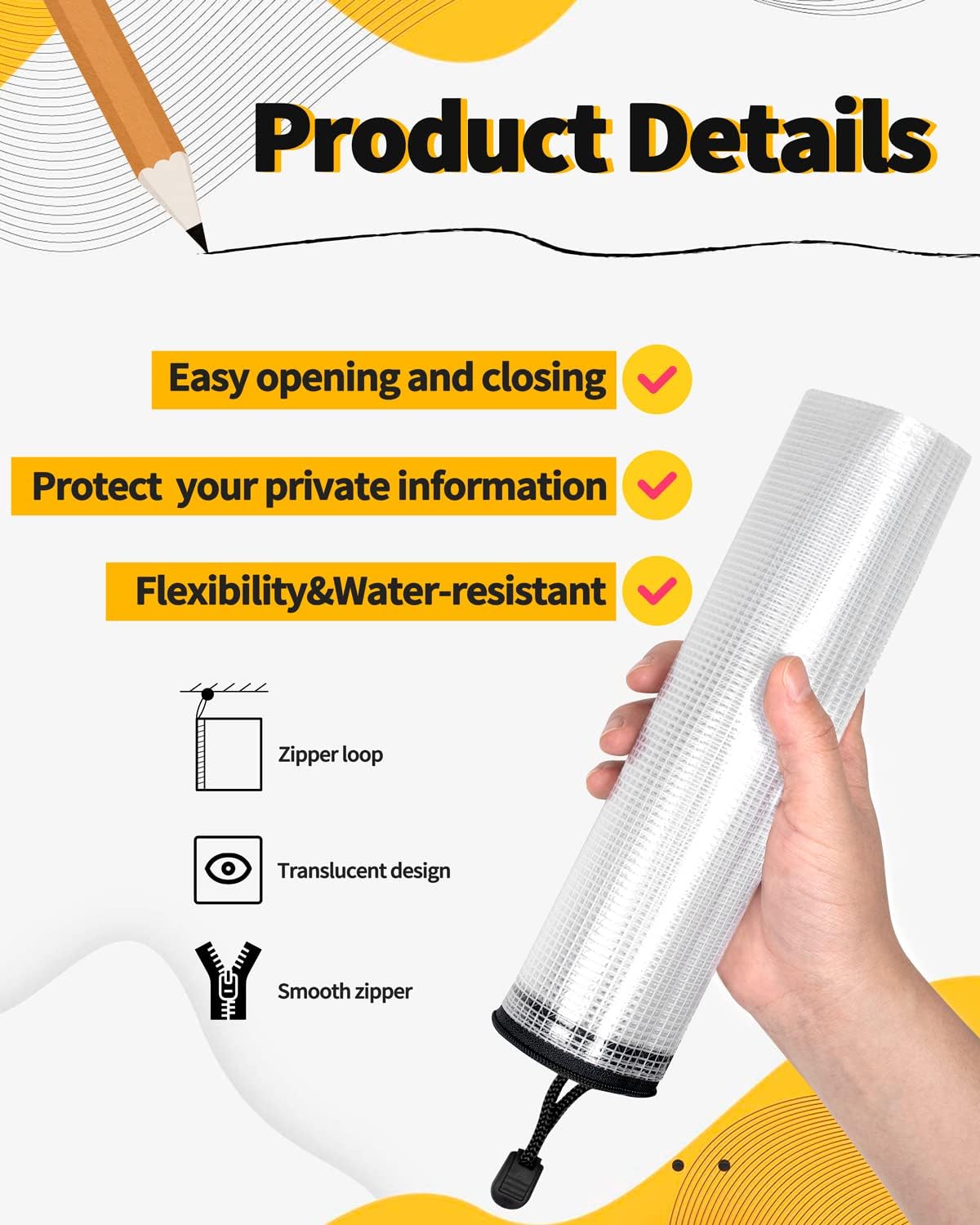 • APPROPRIATE TRANSPARENCY DESIGN: SUNEE zip pouches with moderate transparency prevent from revealing your important papers' privacy, but still can identify what the stuff in the bags. Easily classify the various items, storing in your backpack and travel bag, and quickly get what you need.