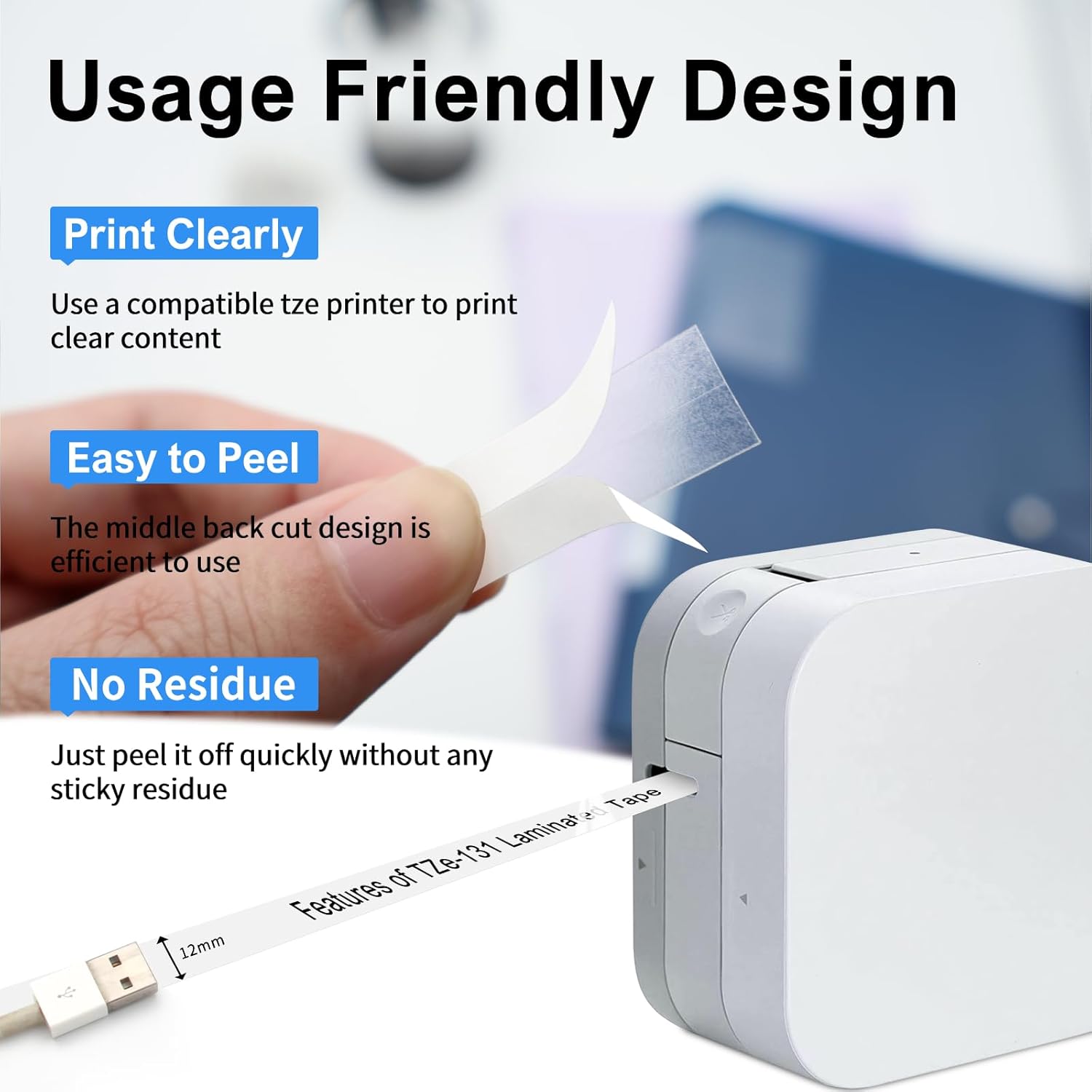 • Easy to Peel: Compatible with Brother label tape clear TZe-131 has split-back design is convenient to use. No sticky residue when the clear label maker tape TZe-131 is removed.