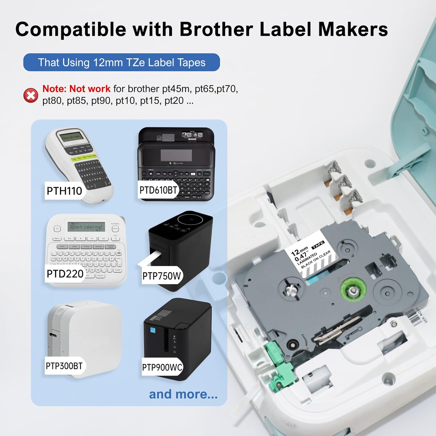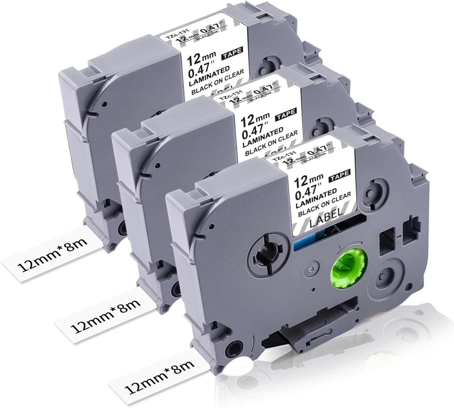• What You Get: 3 packs Lonitul 12mm .47 laminated clear TZ tapes compatible with Brother P Touch label maker tapes clear TZe-131 black on clear, 1/2 Inch x 26.2 Feet(12mm x 8m). Please check if your label maker matches the 12mm TZe label tape.