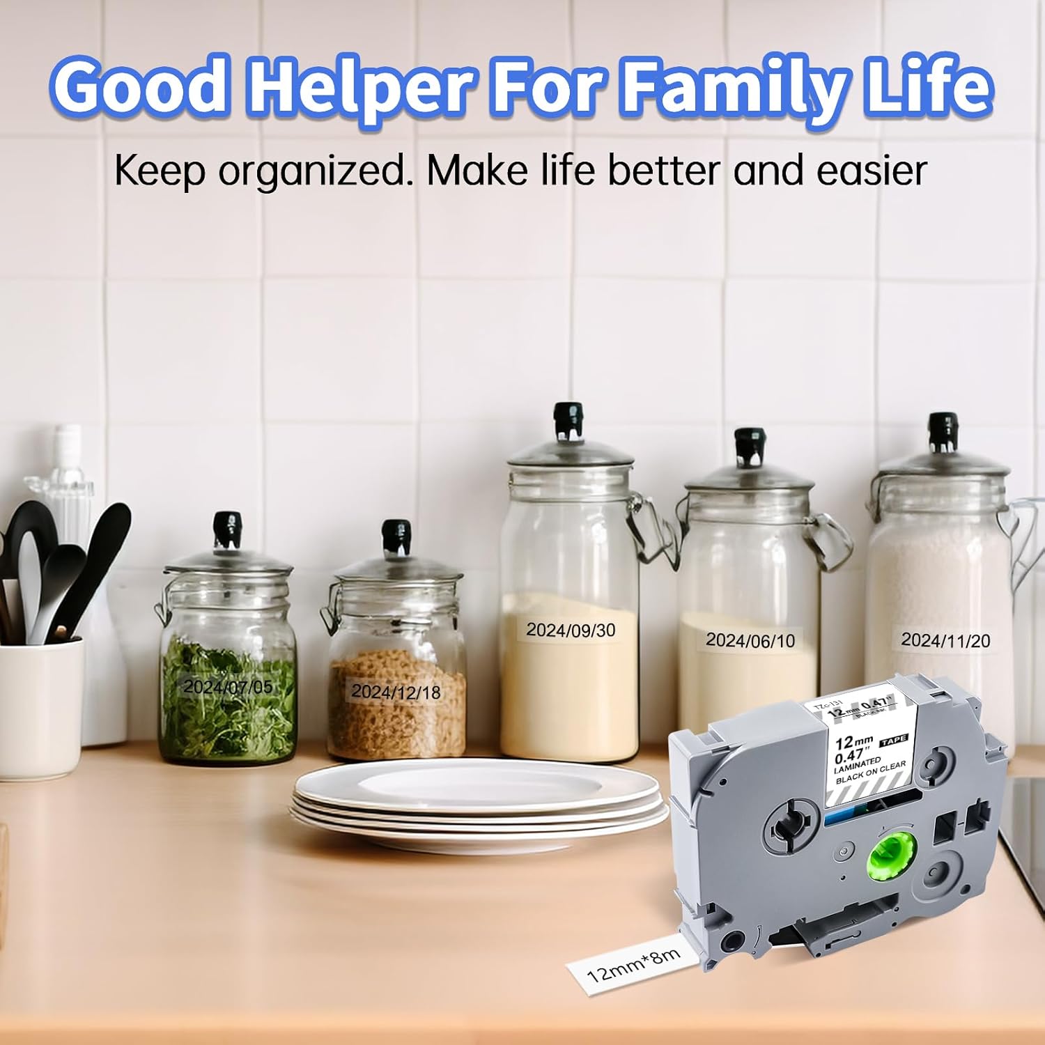 • Lasting & Practical Laminated Tape: Compatible with Brother TZ tape 12mm 0.47 laminated clear is enduring, self-adhesive and print clearly. Resistant to water, oil, fade, abrasion, chemical, heat and cold.