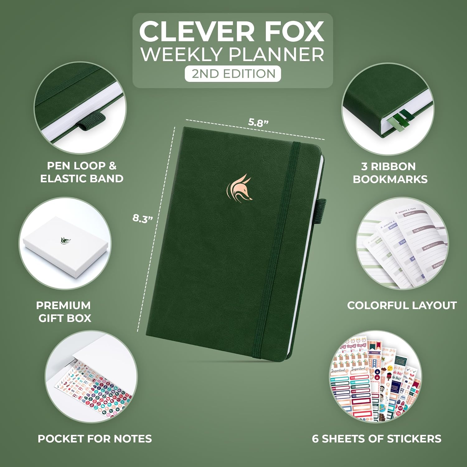 Clever Fox Planner 2nd Edition – Colorful Weekly & Monthly Goal Planner, Time Management & Productivity Organizer, Undated, A5 (Forest Green)