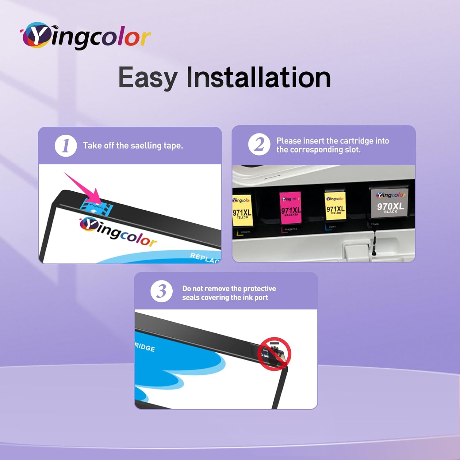 • Packing List: YingColor 970 971 Ink Cartridge (1×970 black ink, 1×971 cyan ink , 1×971 magenta ink, 1×971 yellow ink, totally 4 packs 970xl 971xl ink cartridges for daily printing)
