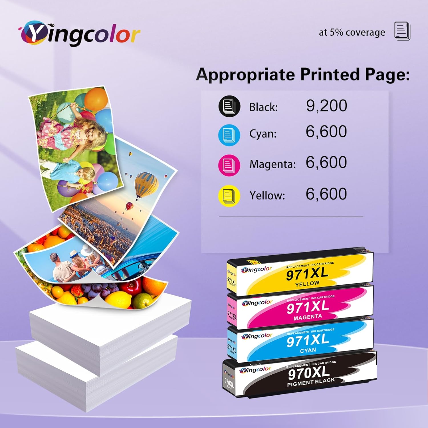• High Capacity: About 9200 Pages Compatible for HP 971xl Ink Cartridges and about 6,600 Pages per 971 ink for hp at 5 percent Coverage