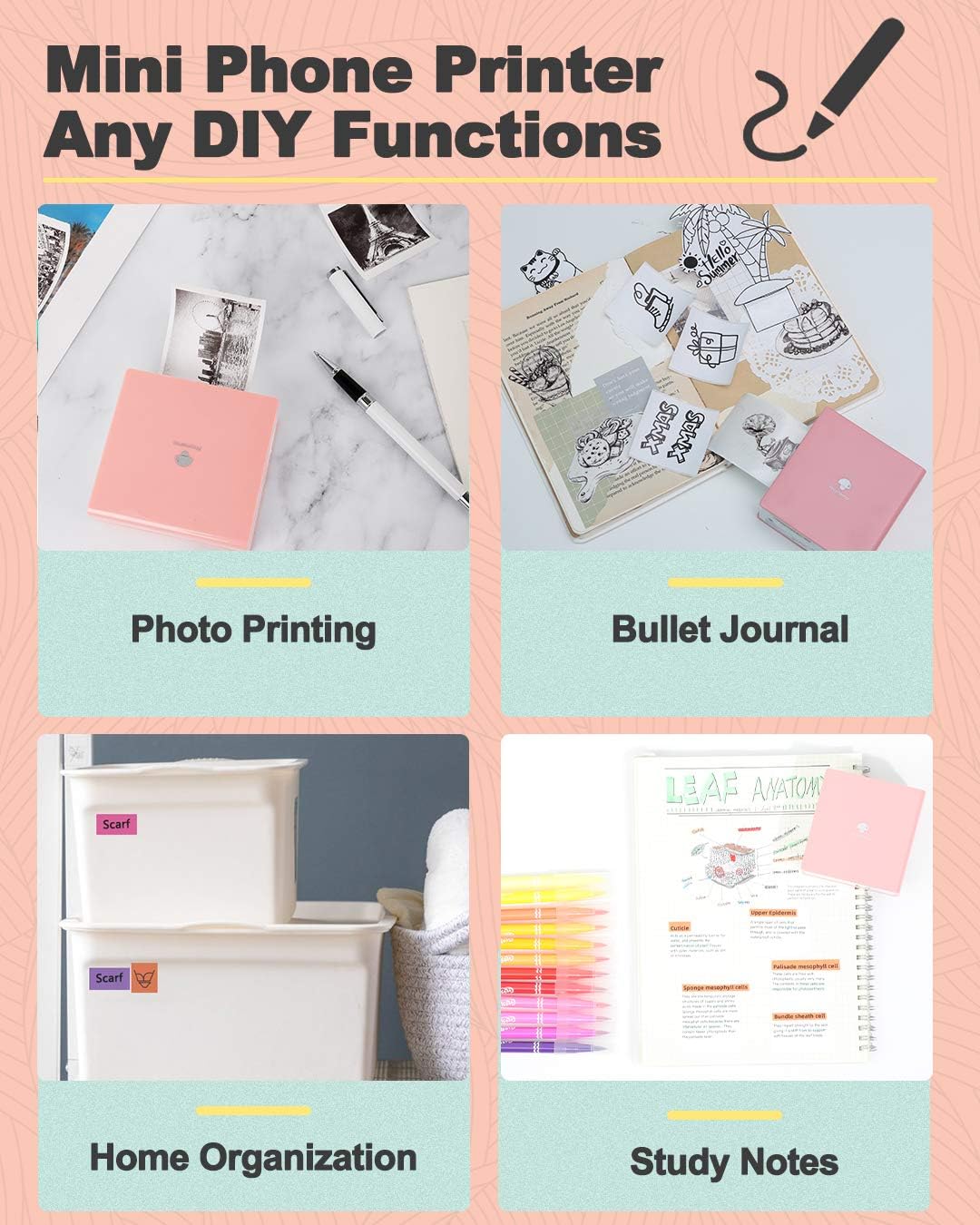 • Phomemo Sticker Printer for Students of All Ages- can be used to print study notes, anatomy cards, chemistry, geography, physics, math and excerpt charts. The mini sticker printer can also be used to help students learn by using the 'scan' feature to clearly print study graphics