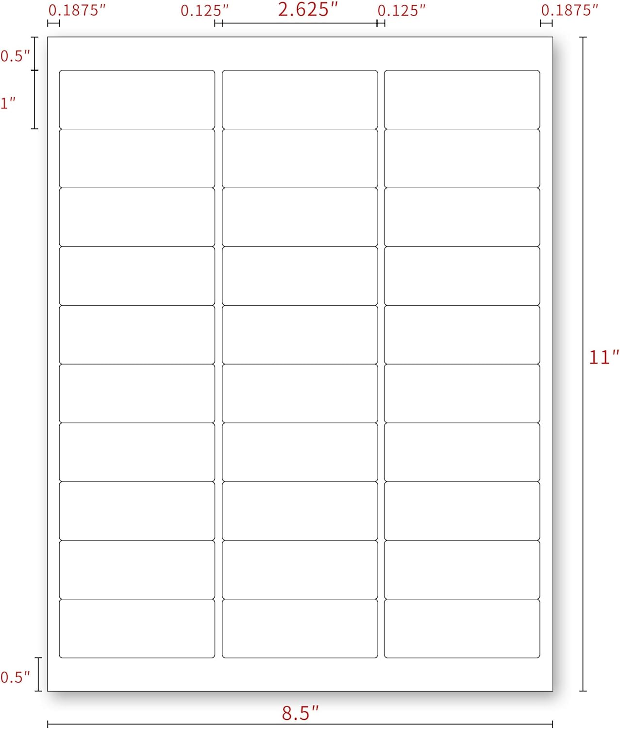 • 3000 PRINTER LABELS come in 100 sheets of 30 labels each. Each label measures 1”H x 2.625”W, perfect for creating your own return address stickers on your laser or inkjet printer.