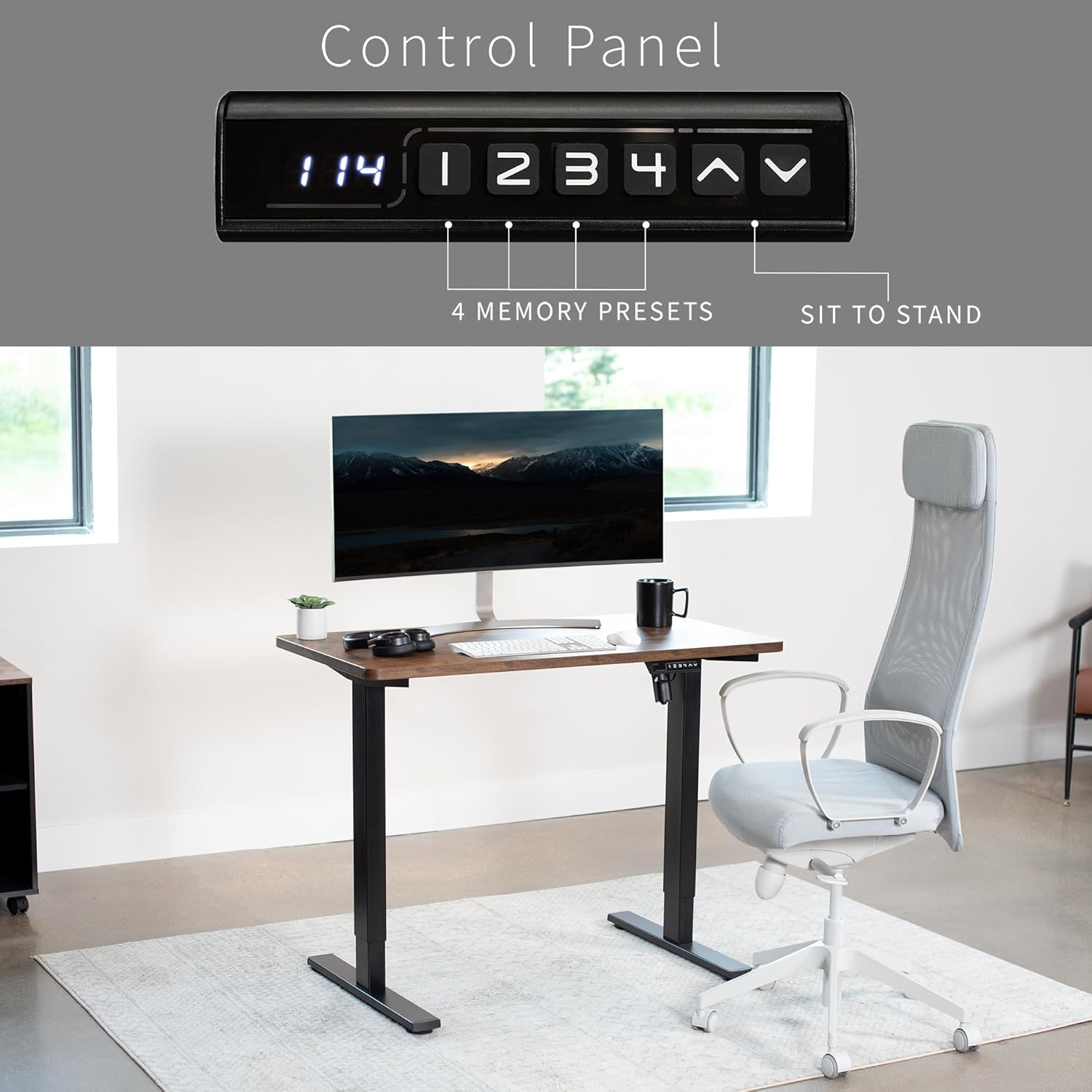 • Powerful Electric Motor: Enjoy a height range of 29.3" to 48.5" with this frame’s powerful motor and strong legs using telescopic height adjustment. The easy-to-use push-button controller features 4 memory presets to save your desired heights