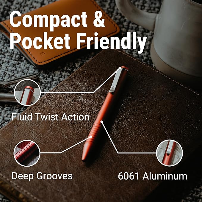 • Crafted from Anodized 6061 Aluminum: Machined from 100% anodized aluminum, this sleek pen is built for durability. Designed as a high-end aluminum pen with a deep-grooved grip, it offers a strong feel with lightweight handling. Perfect for tactical pen lovers, office pros, and stylish daily users.