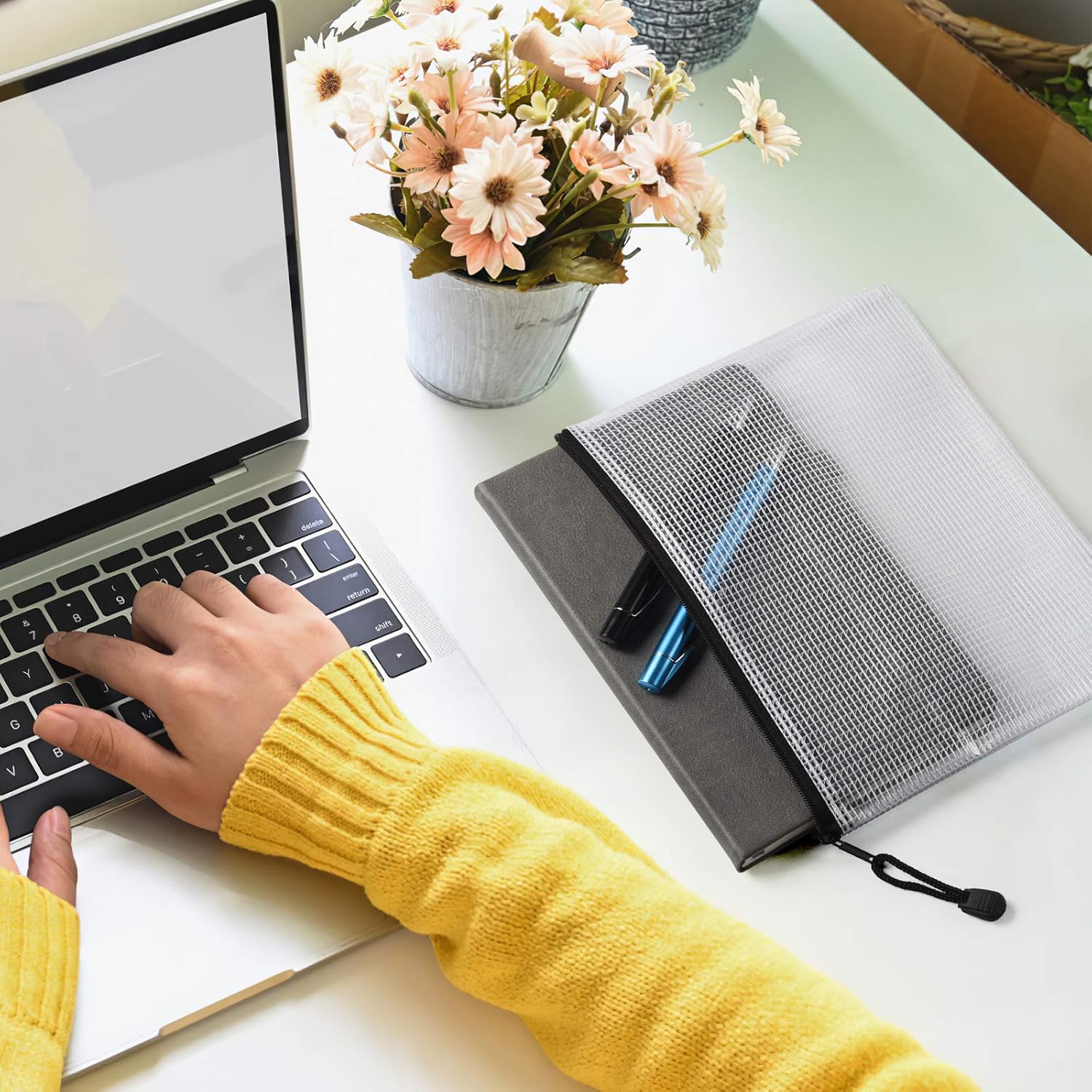 • 【Product Size】Size of the high quality mesh document bags with Zipper is 9.4" x 7.1"/24cm x 18cm(The zipper bag will be larger than the size of A5, manual measurement, there may be an error of 1-2cm). . Which can be used to store some office supplies, like stationery, receipts, invoices etc., also can be used for home daily storage, like the jewelry, make up brush and so on.