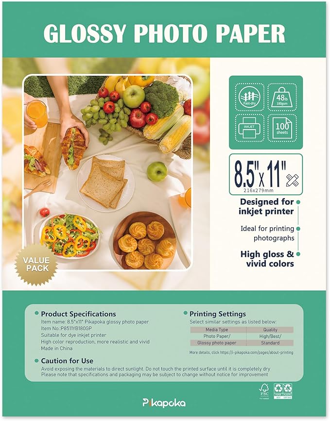 • Pikapoka bulk advanced glossy photo paper 8.5 x 11, 100 Pack, 48 lb