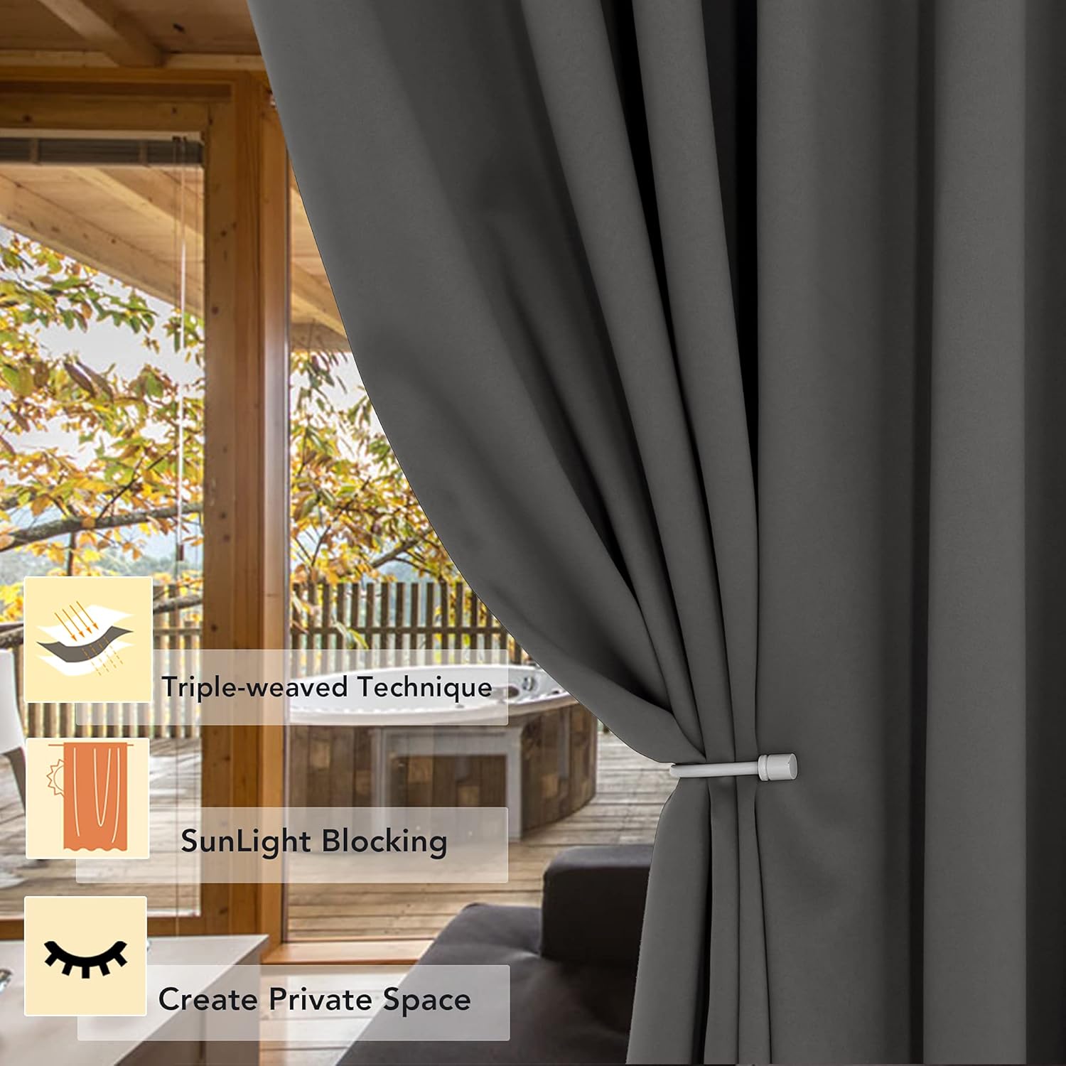 • PREMIUM BLACKOUT MATERIAL: Our room darkening curtain is made of 100% polyester fabric and have the same color with the front and back. Crafted in a certified STANDARD 100 by OEKO‑TEX factory from a durable soft and thick triple weave blackout fabric which block out 90% above sunlight and UV rays. Darker colors work better.