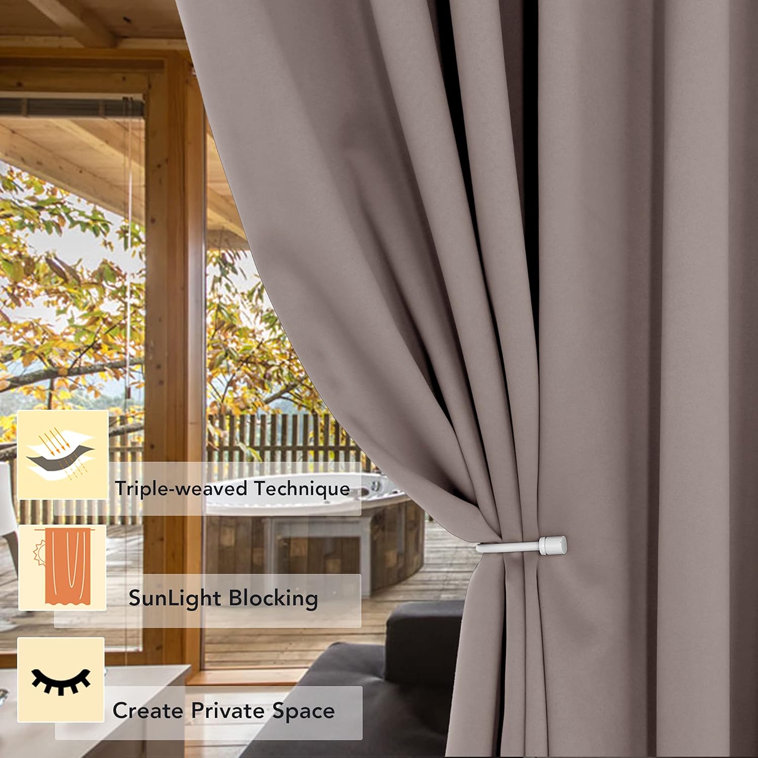 • PREMIUM BLACKOUT MATERIAL: Our room darkening curtain is made of 100% polyester fabric and have the same color with the front and back. Crafted in a certified STANDARD 100 by OEKO‑TEX factory from a durable soft and thick triple weave blackout fabric which block out 90% above sunlight and UV rays. Darker colors work better.