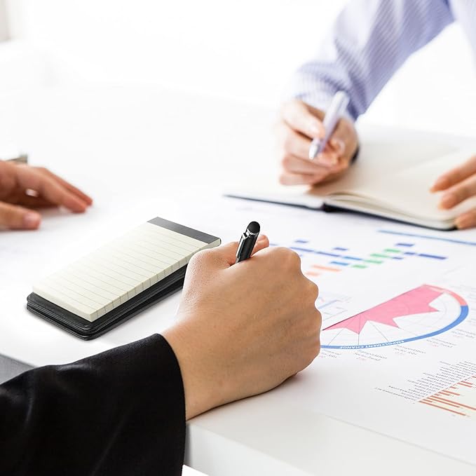 • Package contain: you will get a mini pocket notepad holder with 50 lined sheets, a metal pen and 8 memo book refills with 30 lined paper per pad; They are ruled pages, can comfortably, good for business, conference, meeting, office and travel; Can carry and use it anywhere
