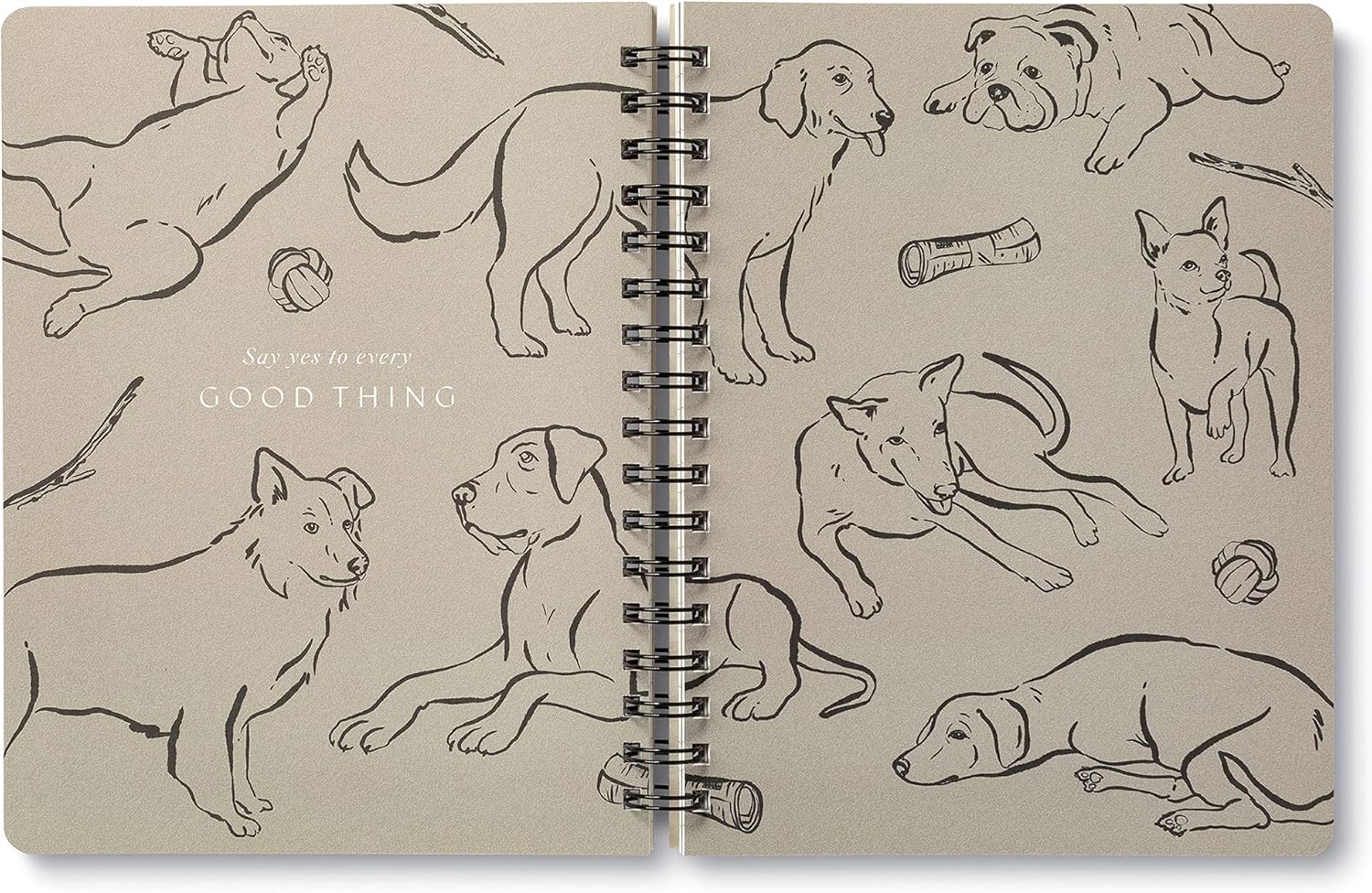 • INSPIRING COVER: This playful, dog-themed spiral journal has an artistic cover featuring black foil stamping that reads, “Play All Day.”