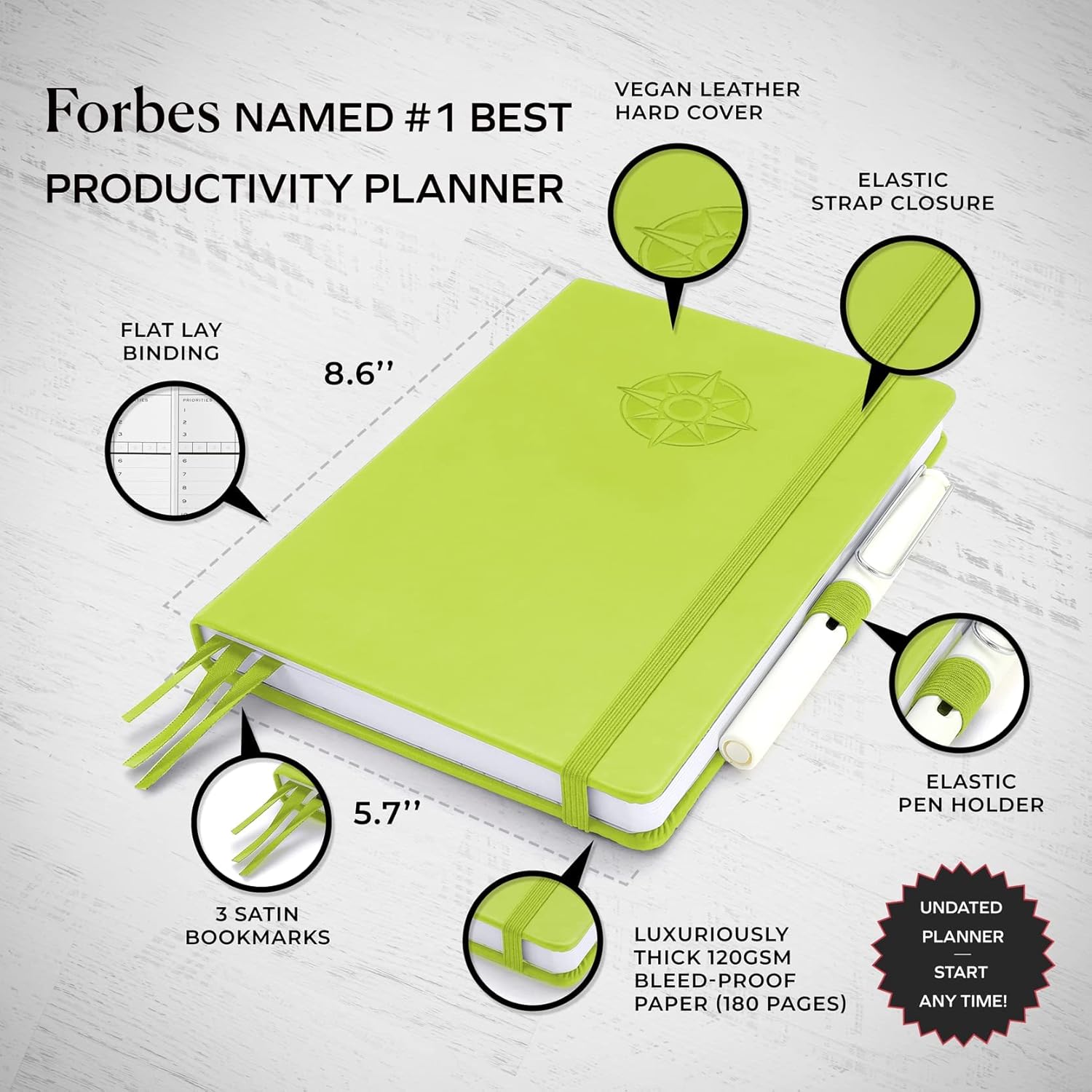 Smart Planner Pro – Undated Daily Planner – Small A5 – Achieve Goals & Increase Productivity – Weekly, Monthly, Work Sections, Organizer Diary with Back Pocket, 3 Satin Bookmarks & Pen Holder