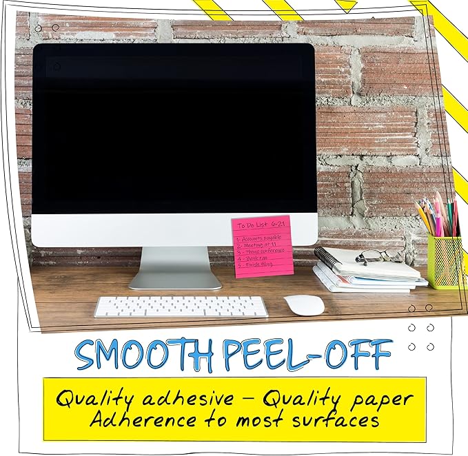 • COMPACT SIZE - Standard 3" x 3" LINED sticky notes in a 20-pack box (6 bright assorted colors), 100 sheets per pad