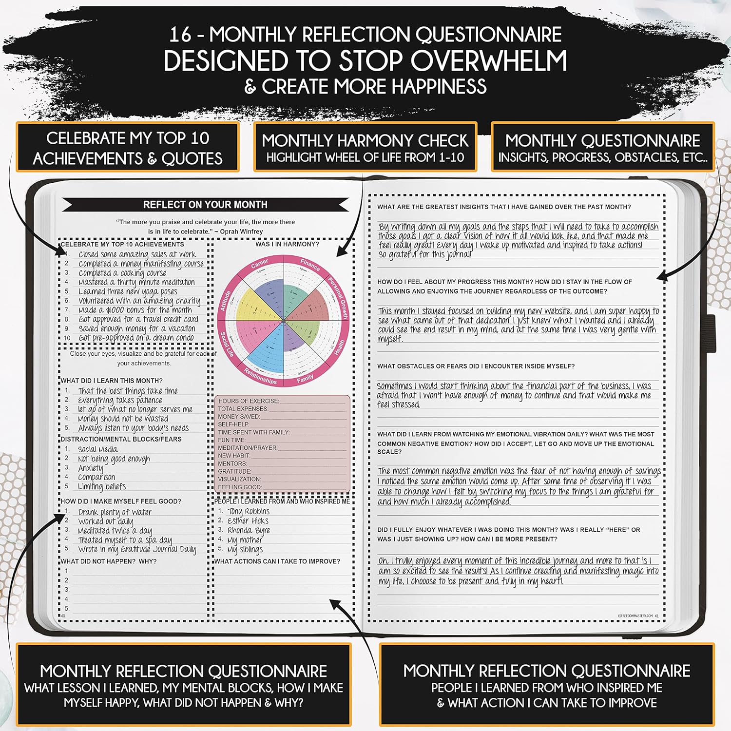 • WEEKLY PLANNER 2025-2026 - Increase your productivity and happiness. This is a deluxe life goal planner showing you how to become the best possible version of yourself on a mental, physical & interpersonal level using the law of attraction vibration guide. The weekly and monthly planner is also a daily, productivity, goal, business planner, to do list planner, notebook & gratitude journal all-in-one.
