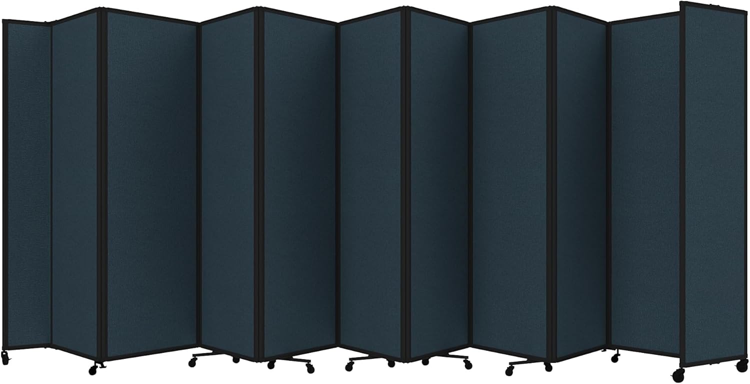 • THOUGHTFUL DESIGN: Made to roll around easily on wheels, this portable room separator also features locking casters to hold it in place. It comes with a trackable surface, sound-dampening fiberglass panels and a folding design for easy storage.