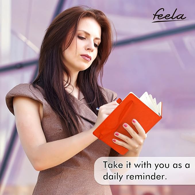 feela 24 Pack Journal Notebook for Work, Business Notebook Bulk Hardcover Lined Writing Journal with Pen Holder for Men Women Note Taking, with 24 Black Pens, 120 GSM, 5.1”x8.3”, A5, Orange