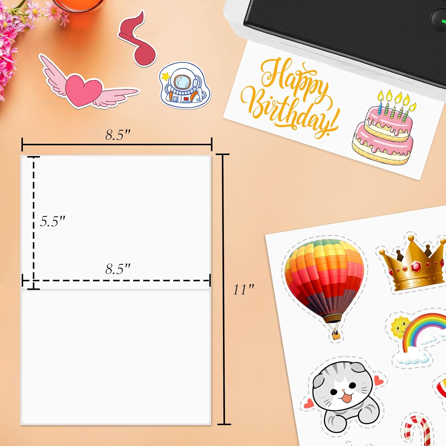 • EASY TO APPLY - Each self-adhesive label sheet comes in a standard 8.5" x 5.5" size. Print out your design and cut, then you can apply on any smooth surface you want. Unleash your creativity and have fun with our printable half sheet shipping labels stickers.