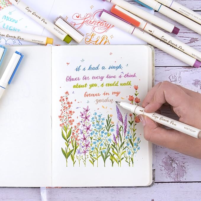 WRITECH Arts Sign Brush Pen Brush Tip Marker Felt Tip Water Based Ink Color Pens 12 Assorted Vintage Colors Great for Lettering Journaling Calligraphy (Vintage)