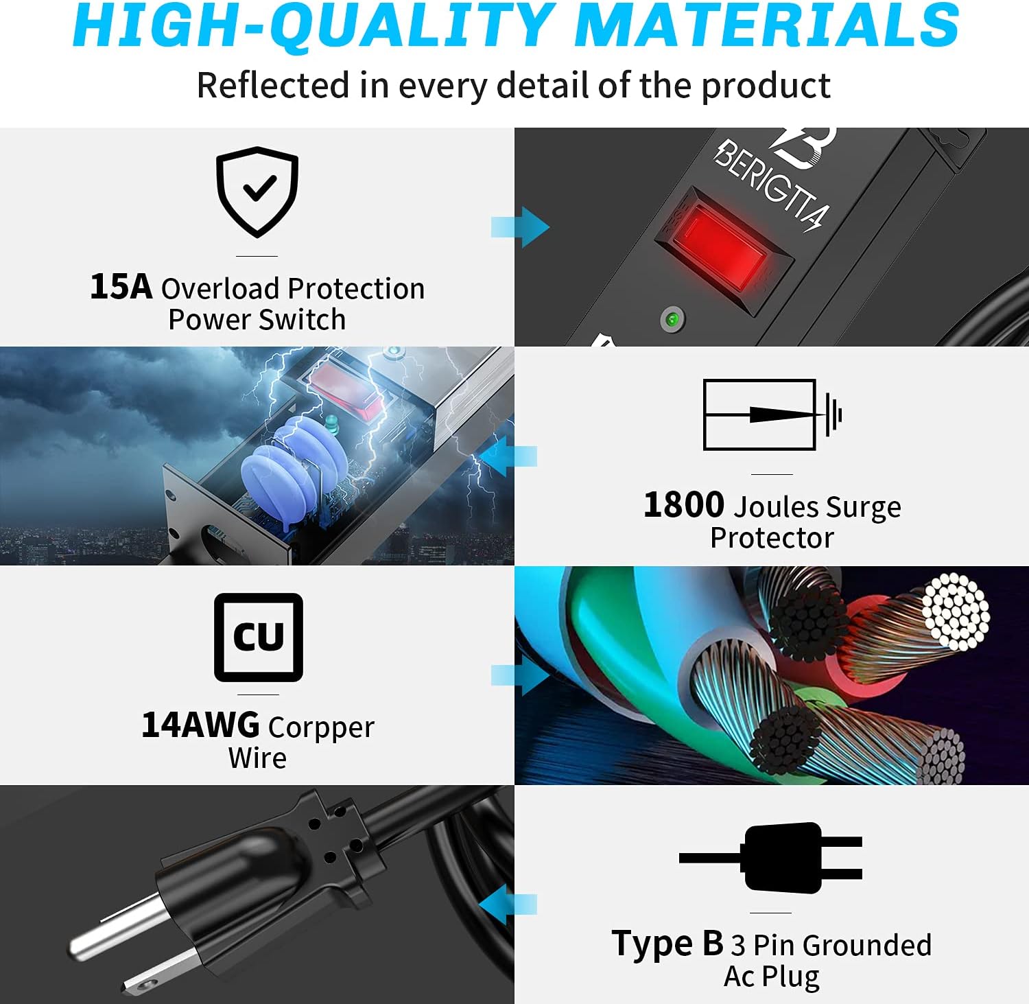 • ✅【SGS CERTIFICATION&AFTER SALE SERVICE】This heavy duty outlet strip with SGS Certification, safe and durable. Our friendly and reliable customer service will respond to you within 24 hours. You can purchase with confidence, with our 30-day return and 12-month replacement .